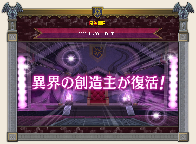 異界の創造主は現在開放中なので来週再度復活の可能性は低そうです。