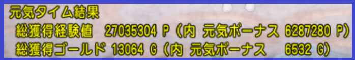 画像は元気玉+料理(30%アップ)+エンゼルスライム帽を使用したものです。