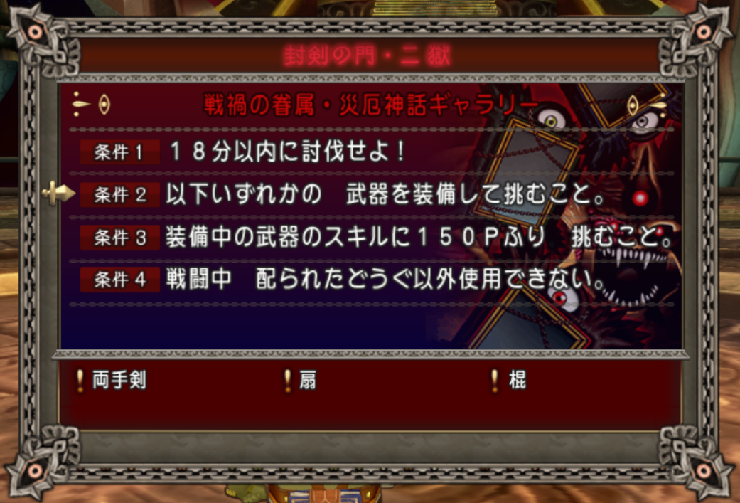 参加条件 : 両手剣・扇・棍装備(武器スキル150P以上)