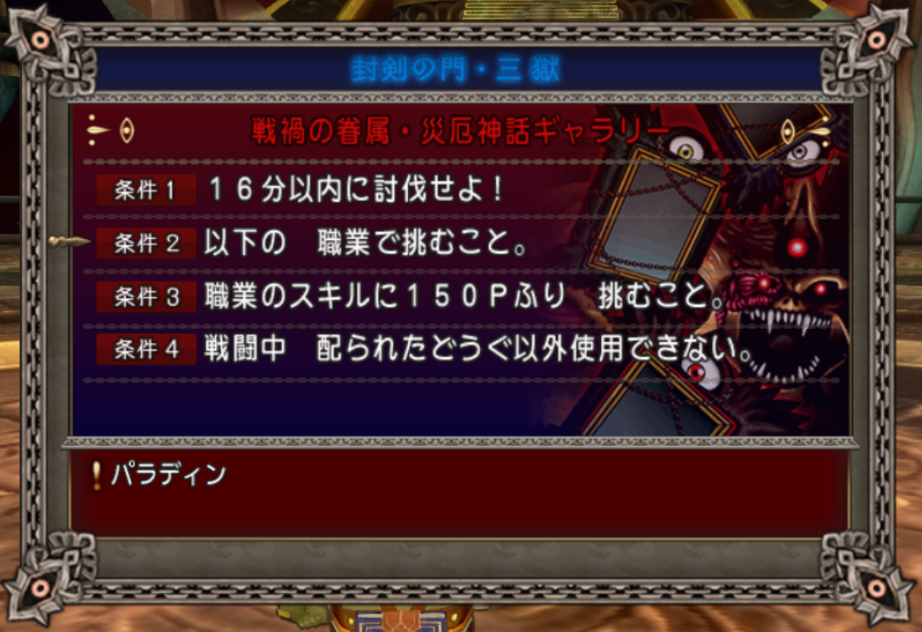 参加条件 : パラディン(職業スキル150P以上)