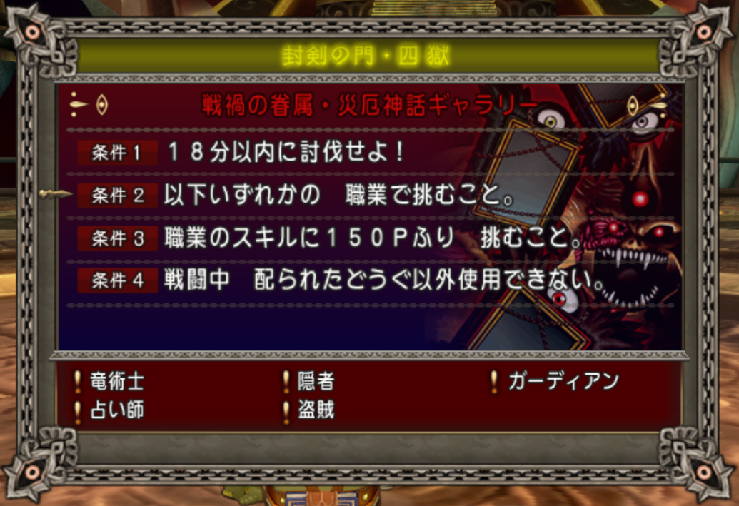 参加条件 : 竜術士・隠者・ガーディアン・占い師・盗賊(職業スキル150P以上)
