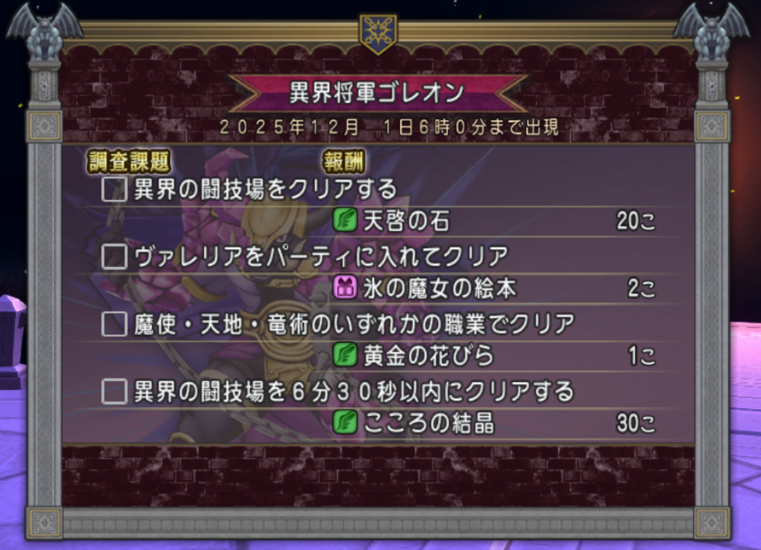 明日異界の闘技場が更新されます(12月1日6:00更新)