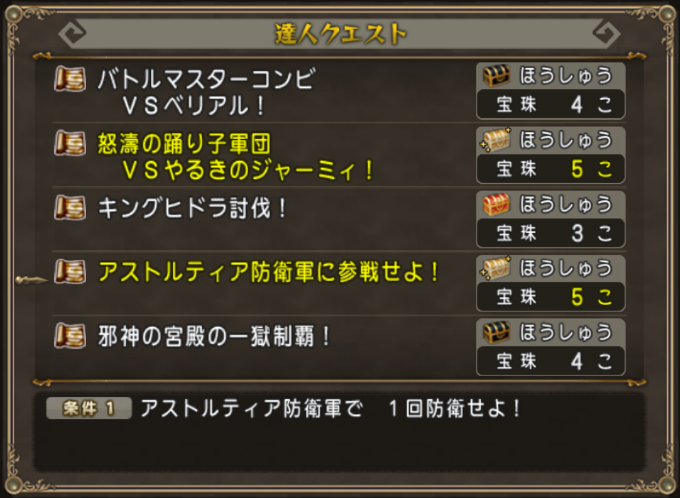 トレーニー育成帳とお題と重複している5個報酬「アストルティア防衛軍に参戦せよ!」が良さそう!