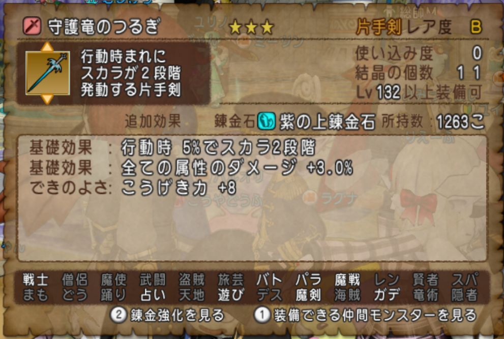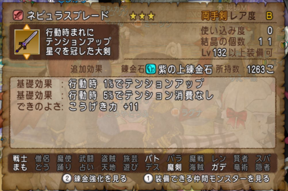 もふファミリー全員が妖精の剣を所持してしているので(魔法戦士やガーディアン、ギガスラ中心の場合のバトルマスターなど)買い替え確定です!