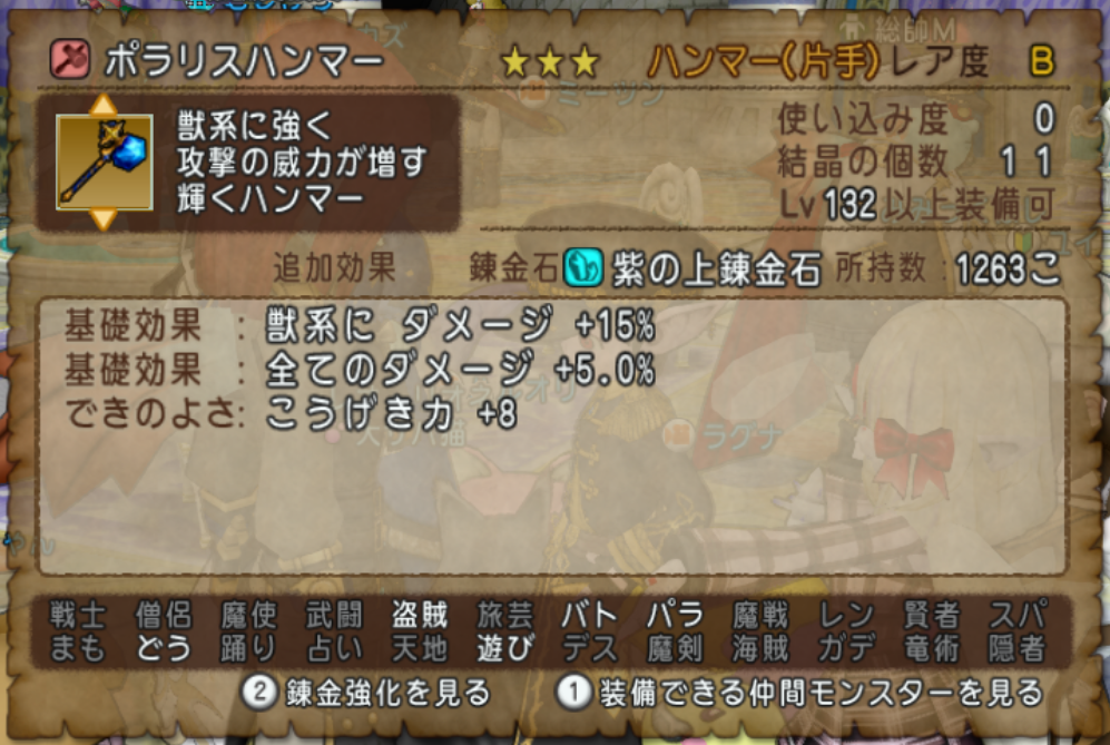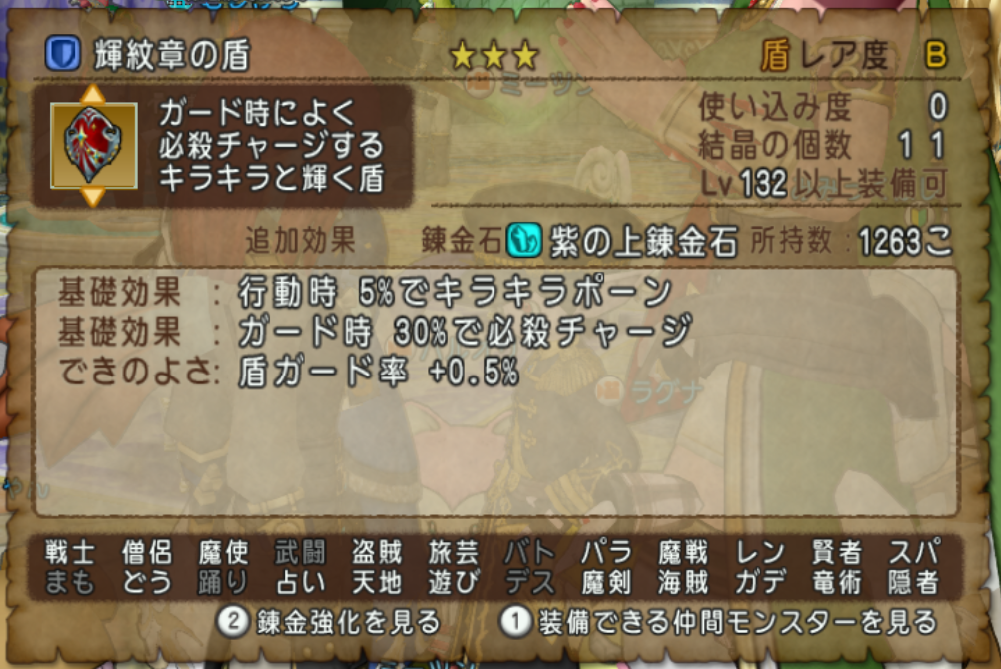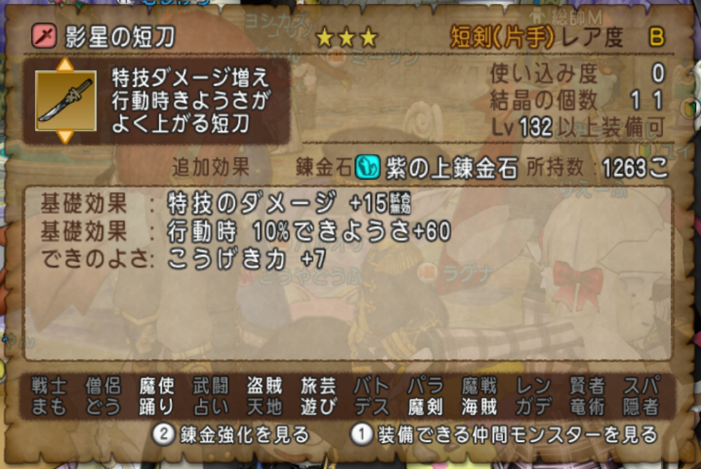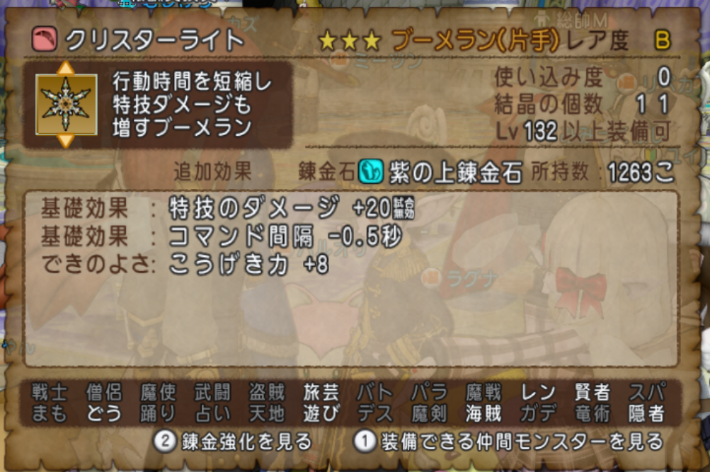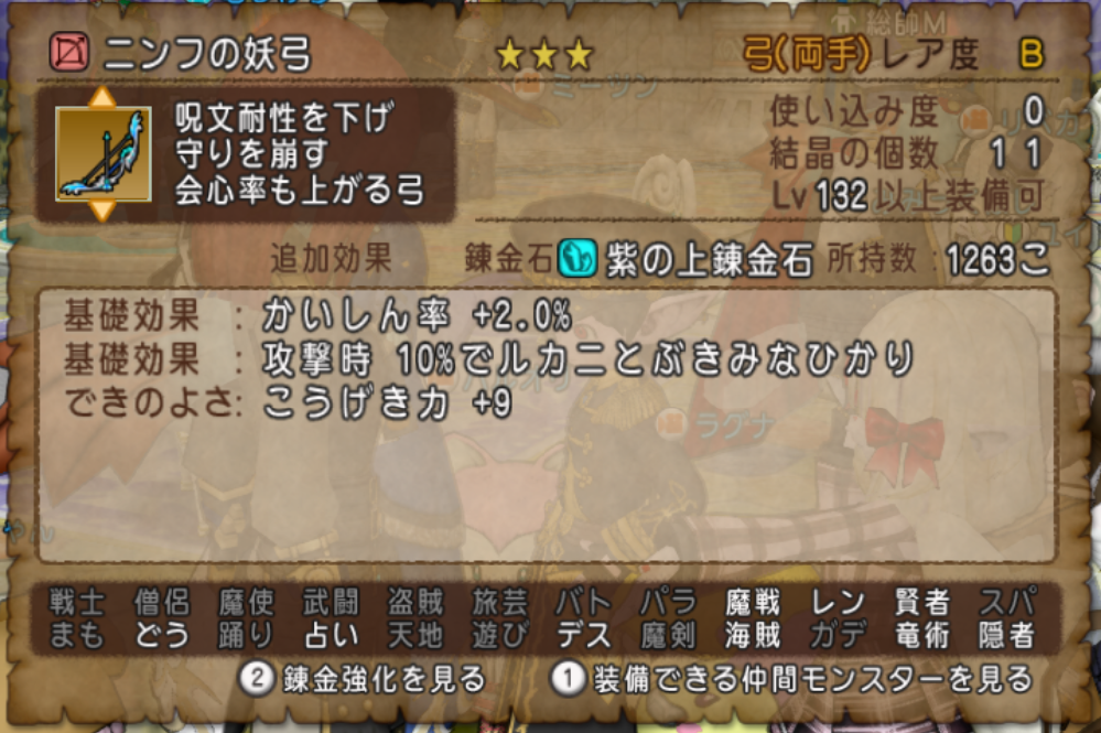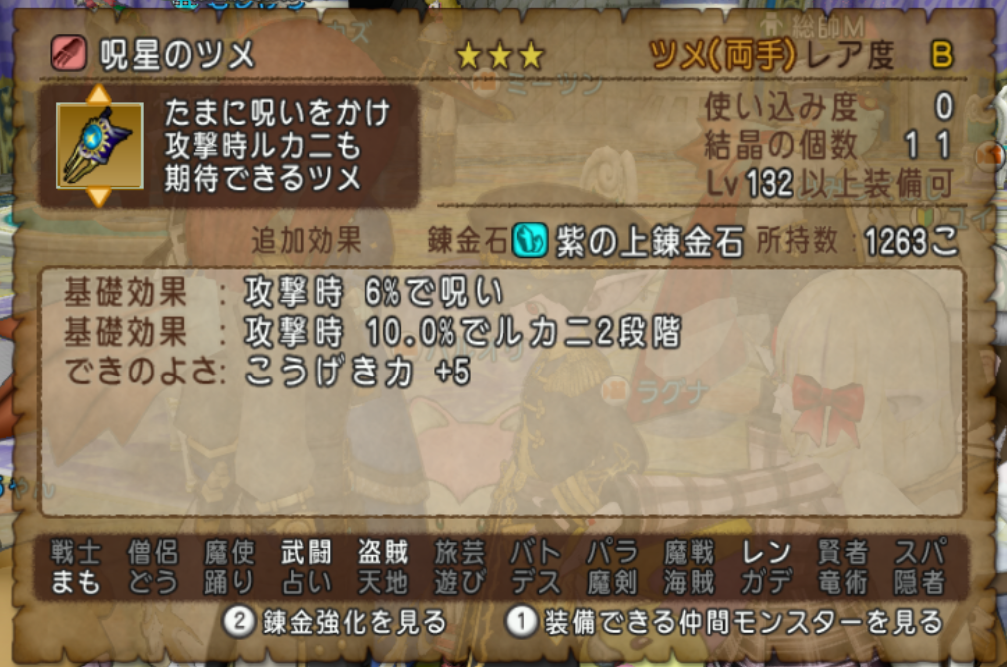 追加効果 : 会心率+2% 攻撃時10%でルカニとぶきみなひかり