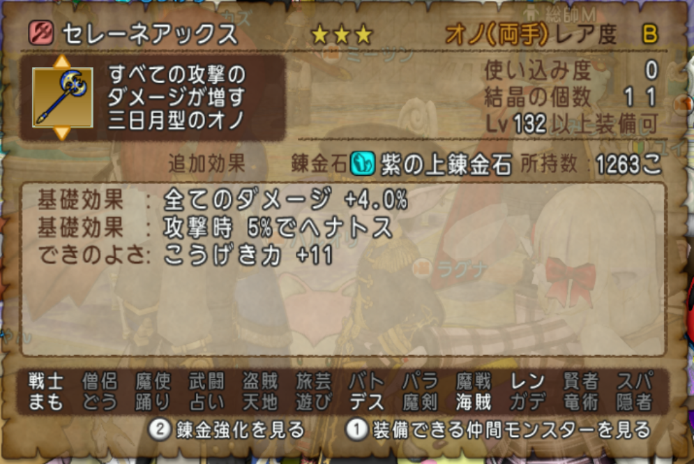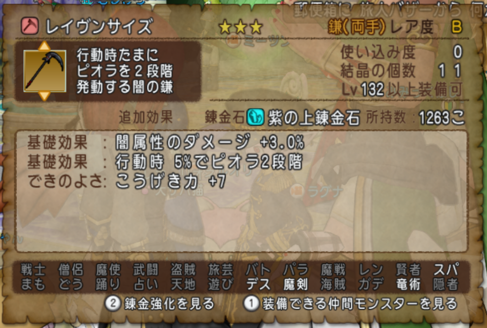 デスマスターは回復・蘇生中心になる事が多いので悩ましいところですが、魔剣士よの鎌として買い替えたいと思います。