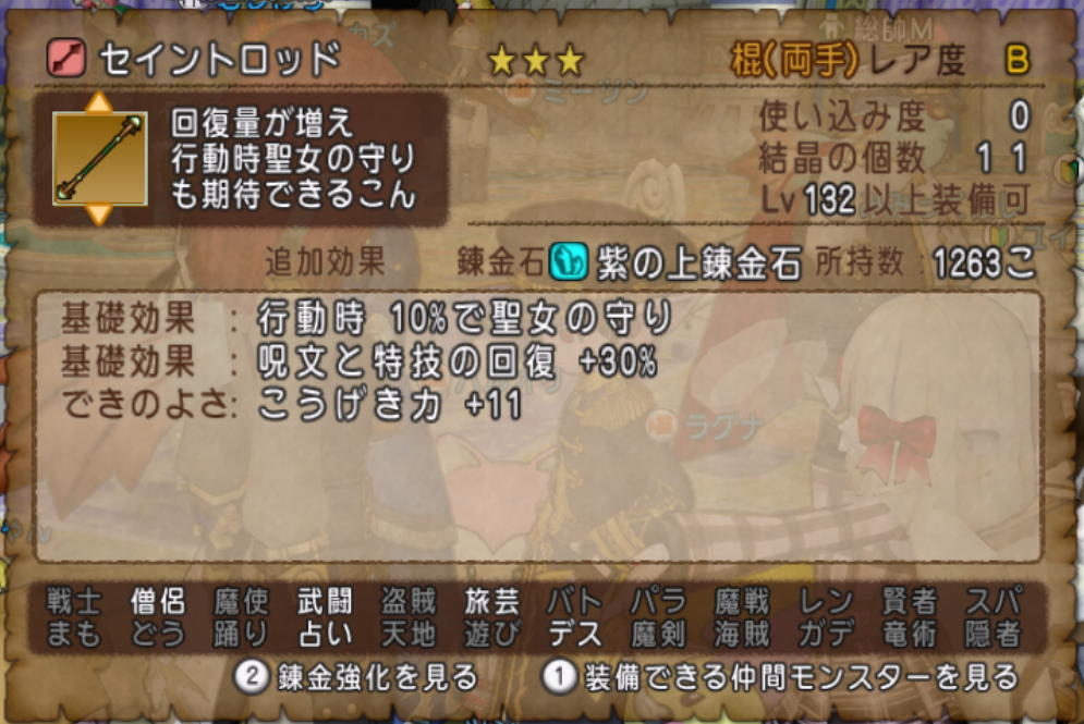 追加効果 : 行動時10%で聖女の守り 呪文と特技の回復+30%