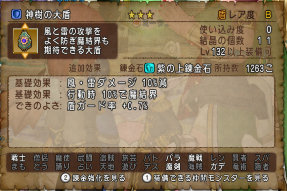追加効果 : 風・雷ダメージ10%減 行動時10%で魔結界
