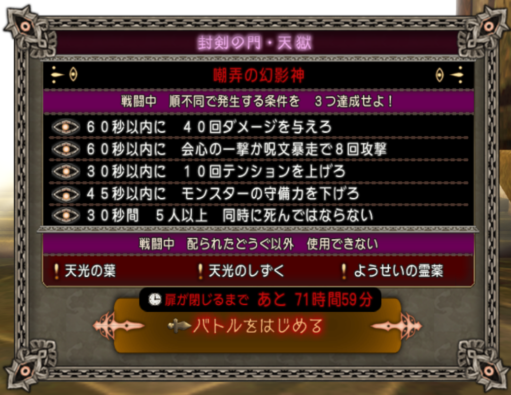 邪神の宮殿・天獄が開放中です。