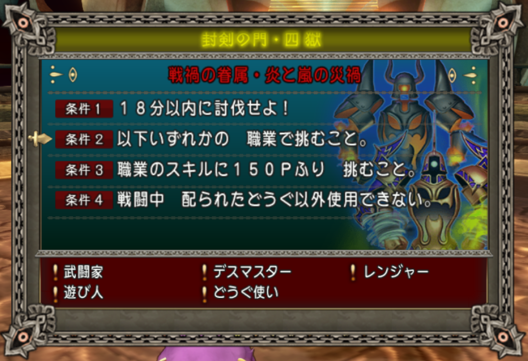 参加条件 : 武闘家・デスマスター・レンジャー・遊び人・どうぐ使い(職業スキル150P以上)