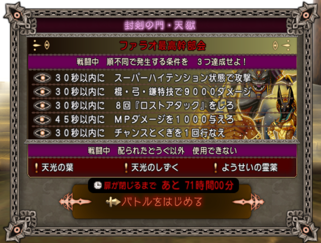 条件クリアが難関なので、アタッカーで行く際には条件に対応できそうな職業で挑戦するのが良さそうです。