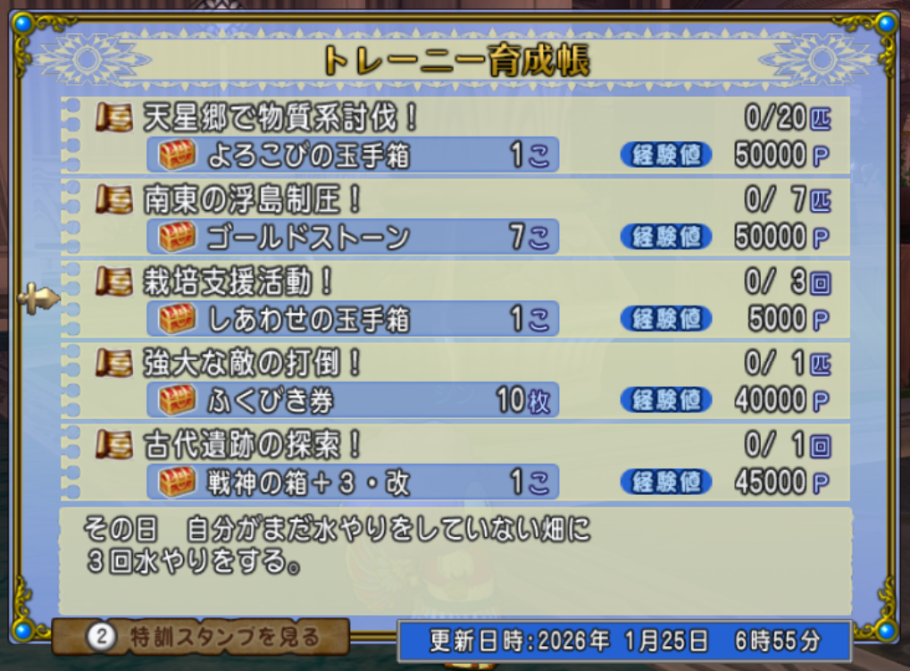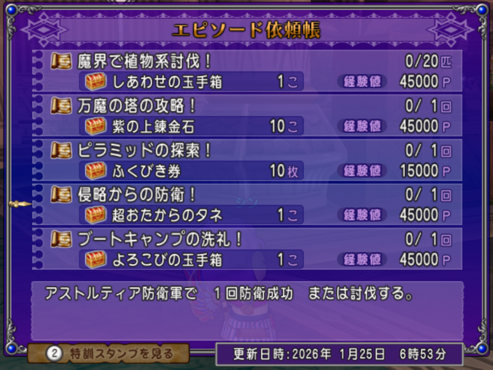 本日1月25日(日曜日)は週課更新日&邪神の宮殿更新日です。