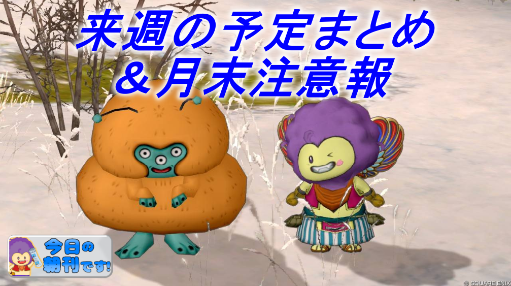 今日の朝刊は来週の予定まとめ! アストルティア・クイーン総選挙!が中心となる1週間となりそうな予感!?