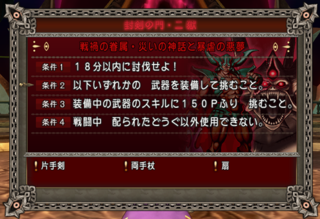 参加条件 : 片手剣・両手杖・扇装備(武器スキル150P以上)