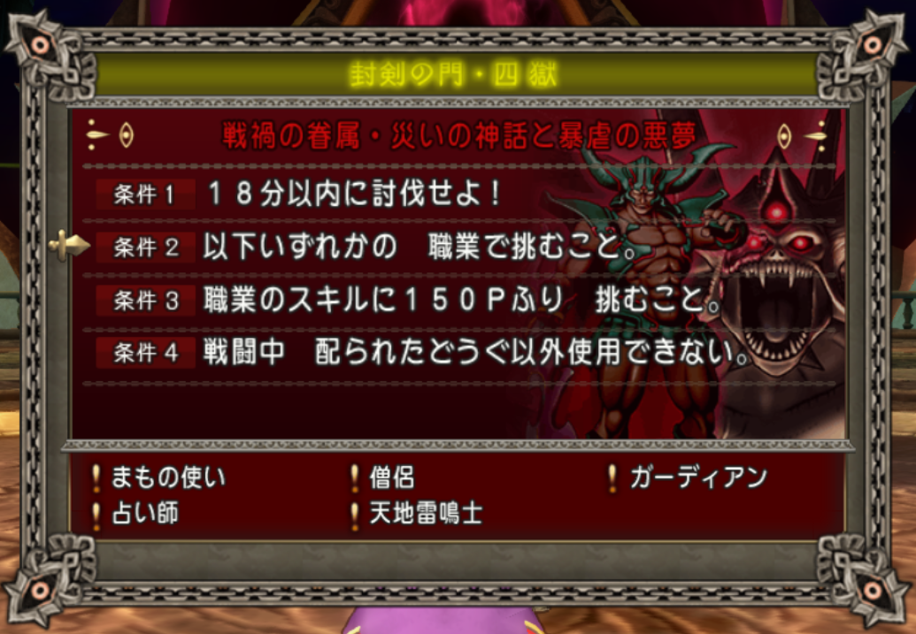 参加条件 : まもの使い・僧侶・ガーディアン・占い師・天地雷鳴士(職業スキル150P以上)