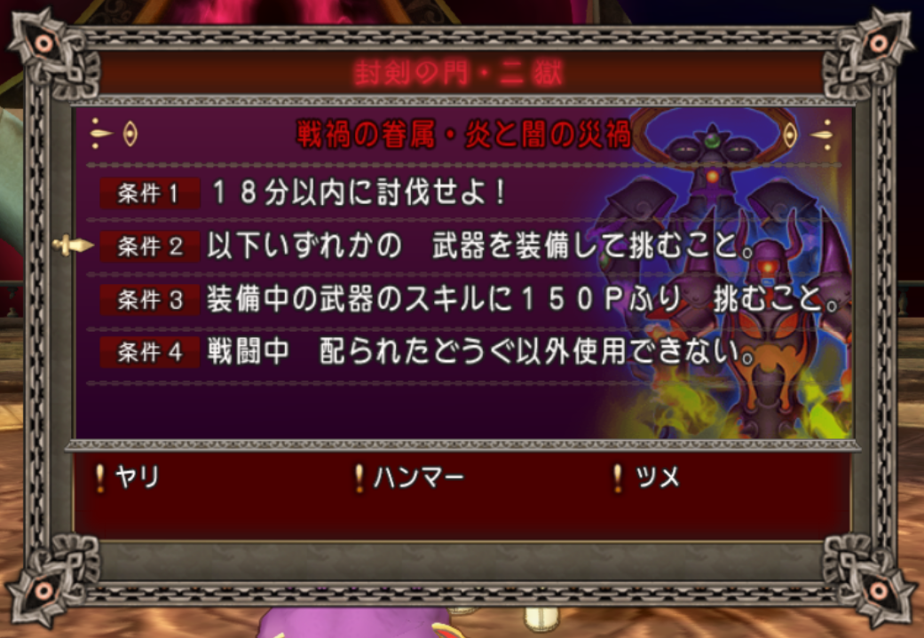 参加条件 : ヤリ・ハンマー・ツメ装備(武器スキル150P以上)