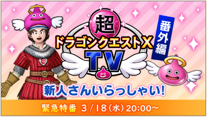 超ドラゴンクエストⅩTV番外編 新人さんいらっしゃい! が配信されます。