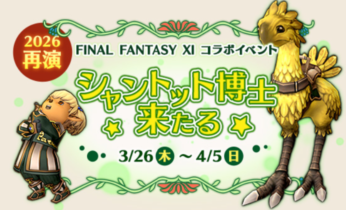 ファイナルファンタジーⅪとのコラボイベント「シャントット博士来たる」が始まります。定番の再演イベントですねっ!