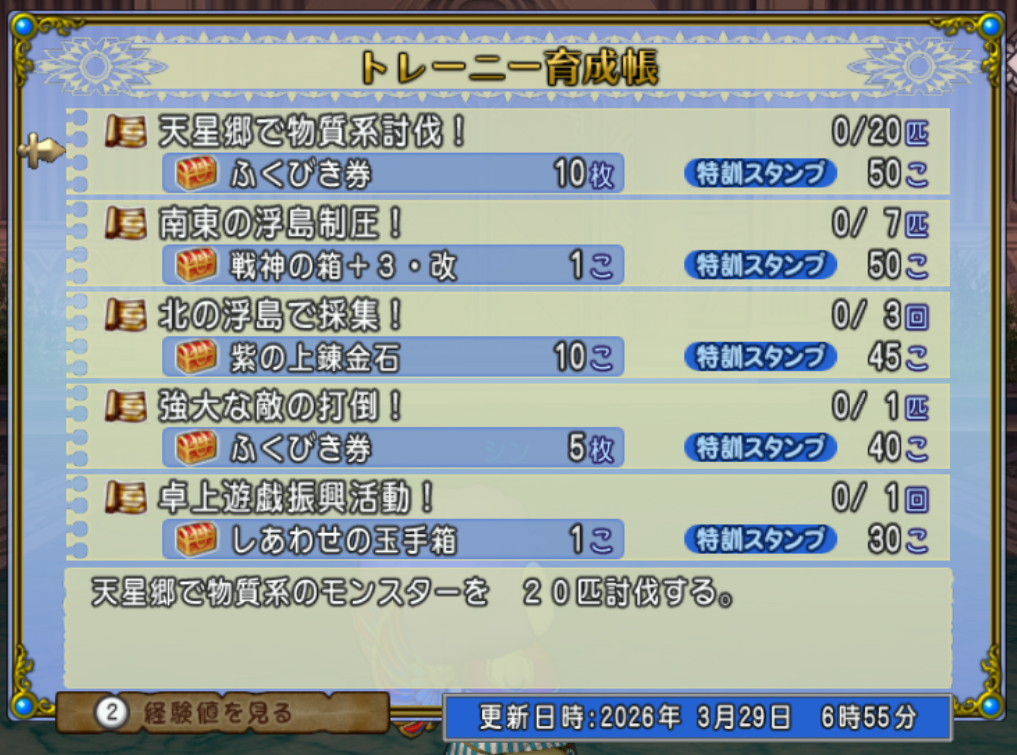 今週のトレーニー育成帳です。