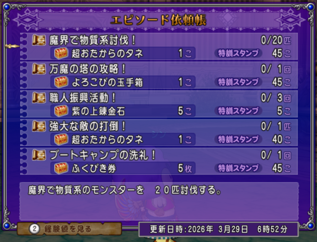 今日のうちくらいであれば5個報酬「邪神の宮殿の二獄制覇!」もマッチングしてくれるのではないかと思います。