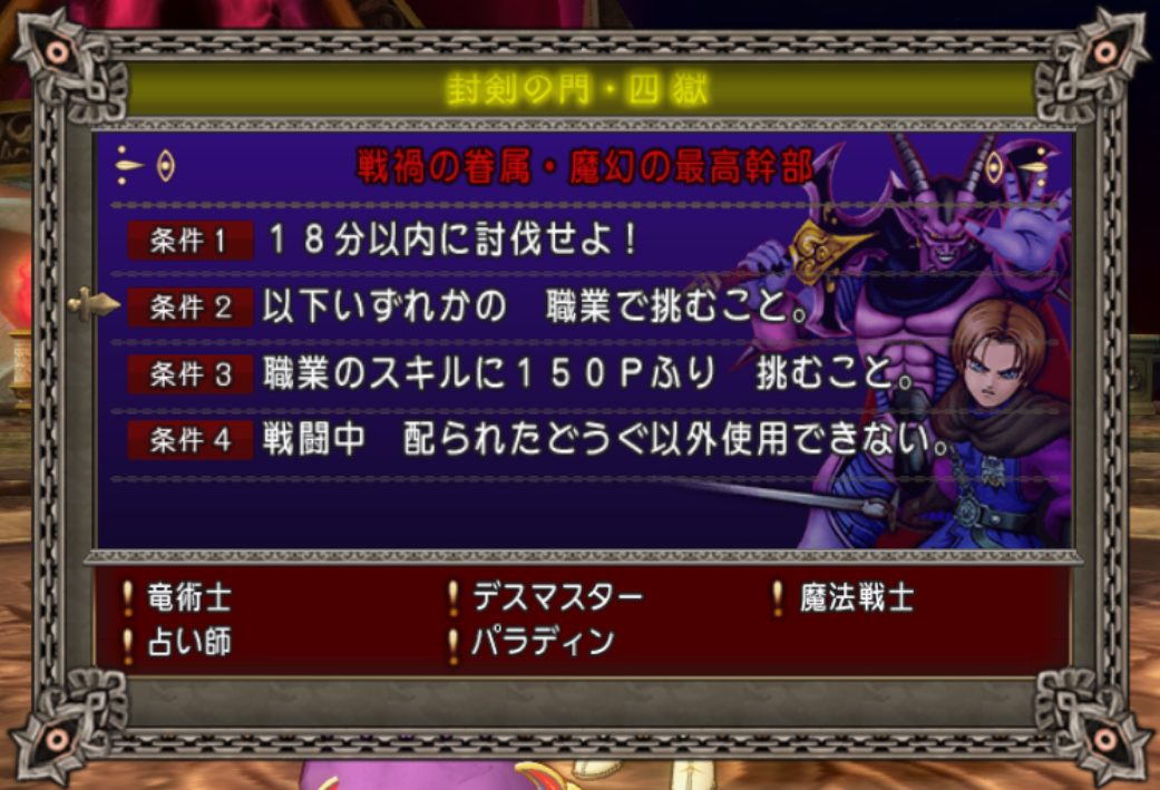 参加条件 : 竜術士・デスマスター・魔法戦士・占い師・パラディン(職業スキル150P以上)