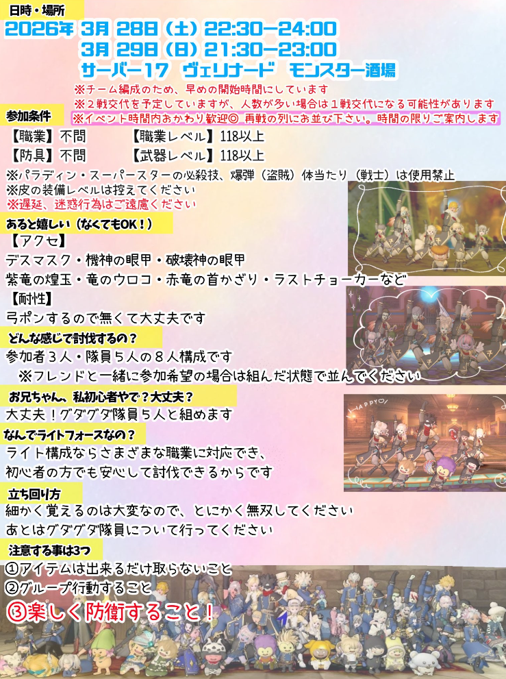 プレイベ「グダグダ防衛軍」ではアストルティア防衛軍に慣れたスタッフさんたちも含めて全員が「無傷討伐」を目的に狙って実績クリアを目指します。高確率でクリアできそうだと思いませんか?