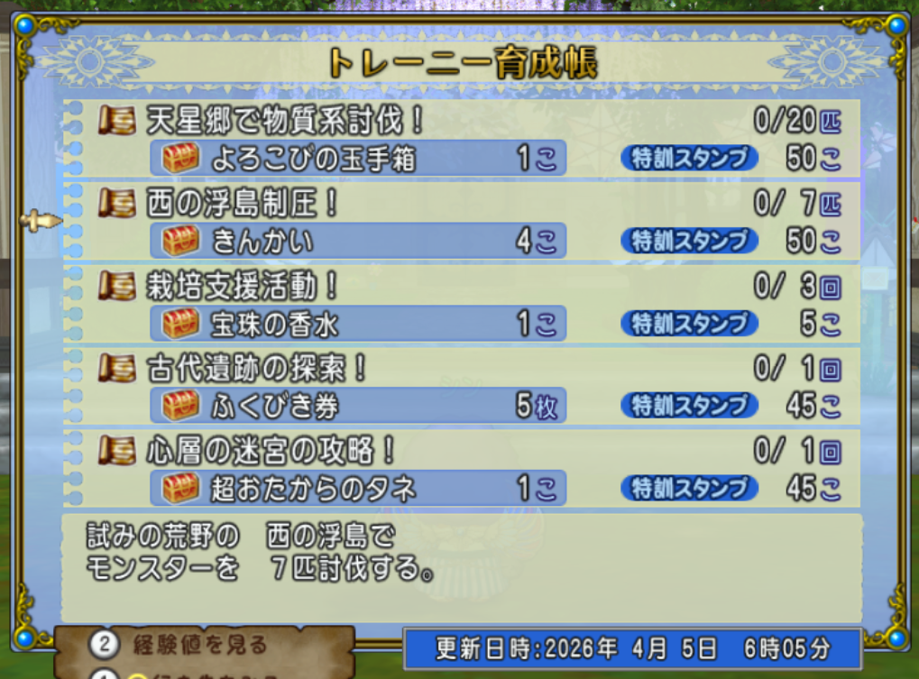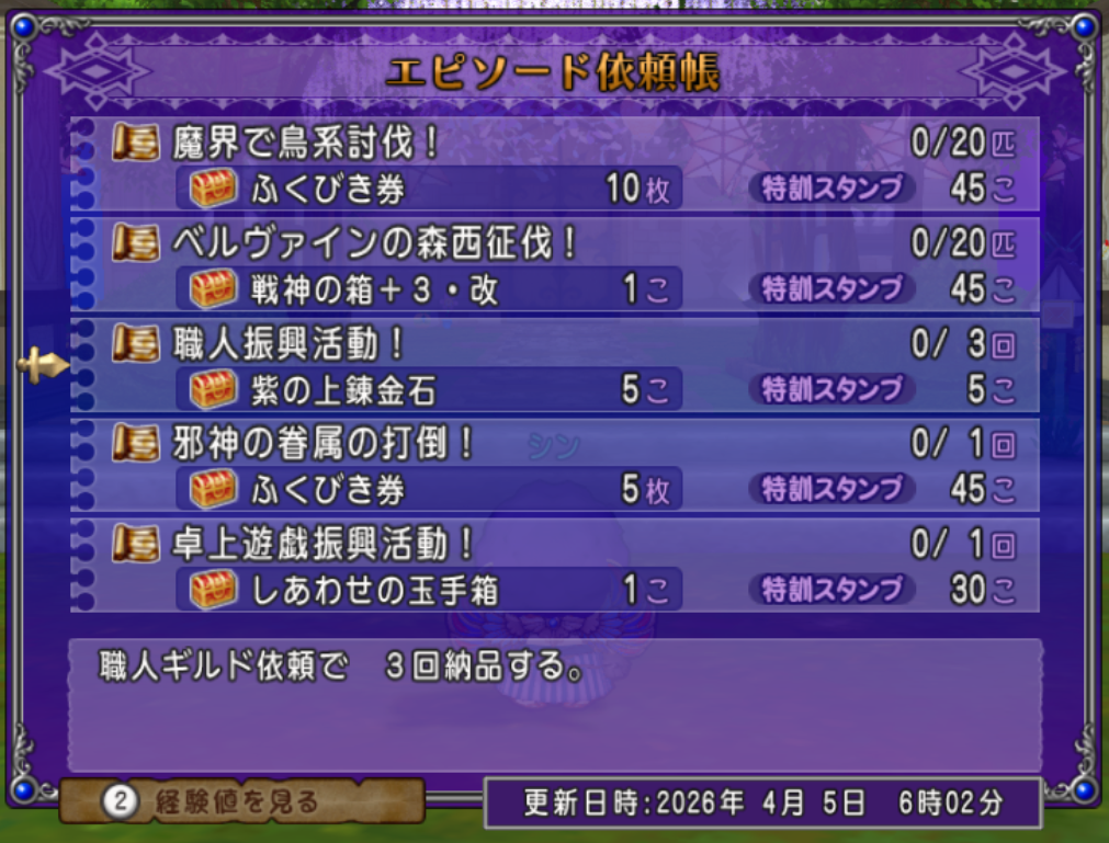 今週の金曜日には邪神の宮殿が更新されるので「邪神の眷属の打倒!」は更新後クリアで良さそうです。(自動的にクリア!)