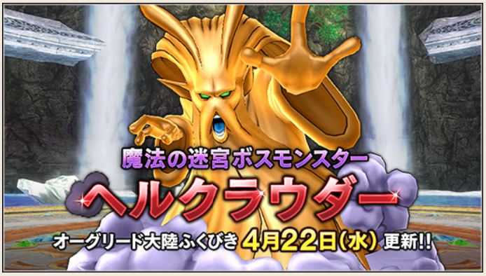 冒険者の広場にて新コインボス「ヘルクラウダー」実装の情報が正式にリリースされました。4月22日実装です。来週!!