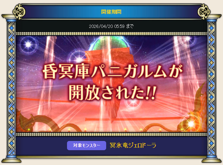 ガッツリ昏冥庫パニガルムに籠りたいところなのですが、深淵の咎人フィーバーやロスターさん関係も気になる・・・という悩ましい期間になりそうです。