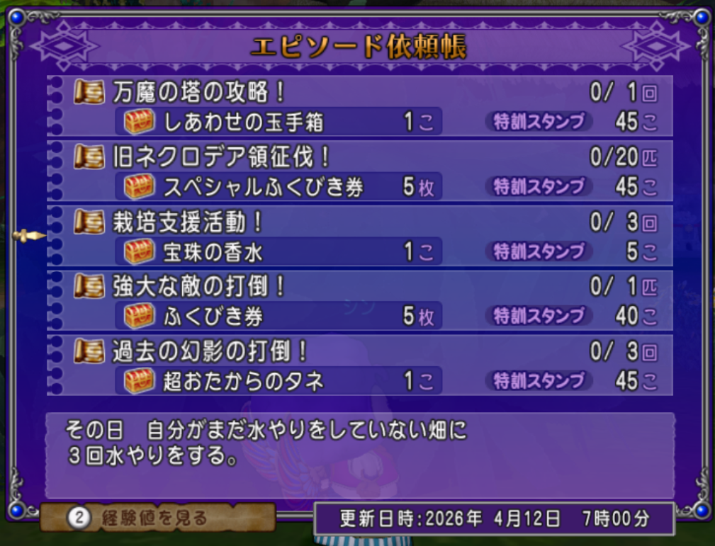 5個報酬のお題が3種類もありますが、どれもなかなか手間が掛かりそうです。