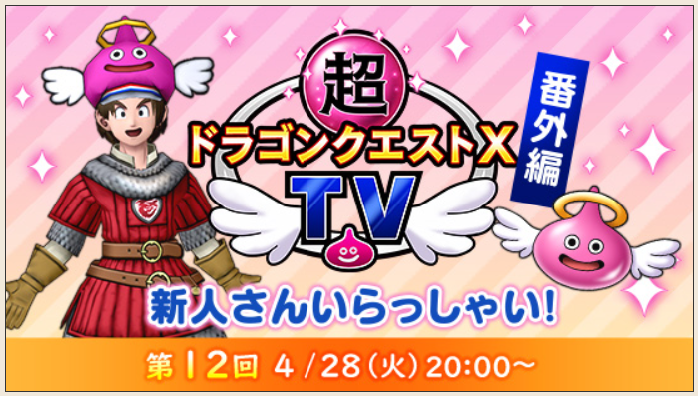 | 4月28日(火) | 超ドラクエⅩTV番外編 新人さんいらっしゃい!配信 |